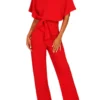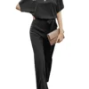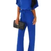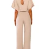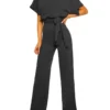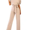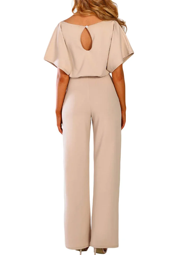Women Jumpsuits Elegant Solid Color Flare Short Sleeve Waist Tie Wide Leg Pants Romper Summer Streetwear