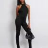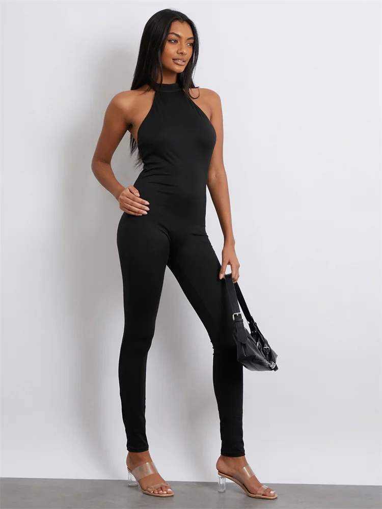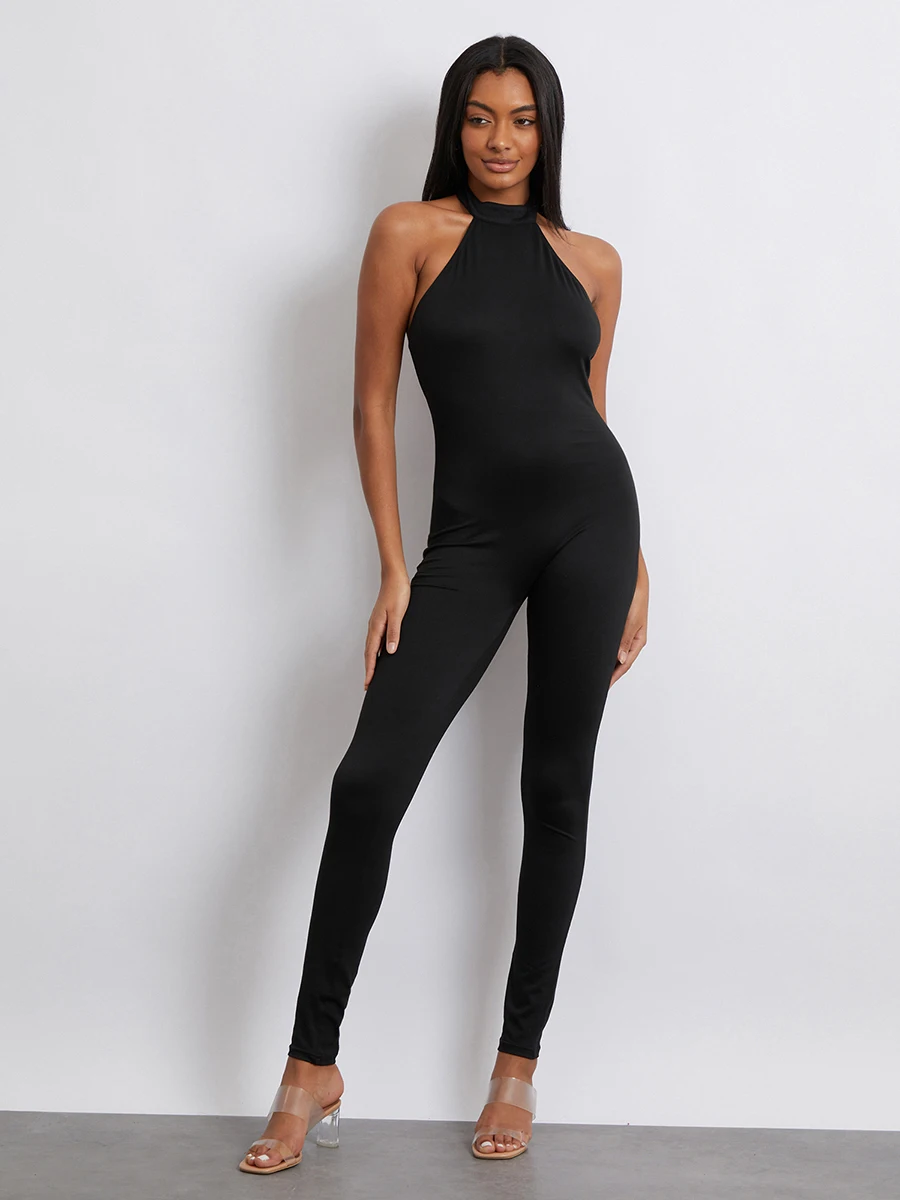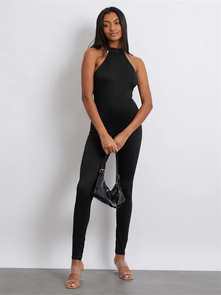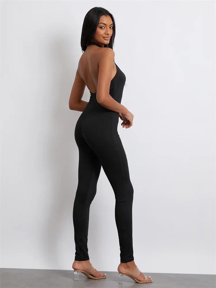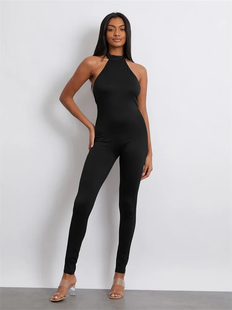 Women Jumpsuit, Sleeveless Halterneck Backless Solid Slim Long Romper Party Clubwear