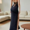 Lace patchwork back, low cut, backless, side slit, summer sleeveless dress, casual beach party dress to make you look slimmer, a must have dress in your wardrobe.