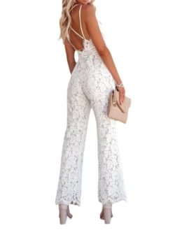 Women Fashion Elegant Lace Jumpsuits Spaghetti Strap V Neck Wide Leg Romper Ladies Summer Sexy Casual Retro Streetwear